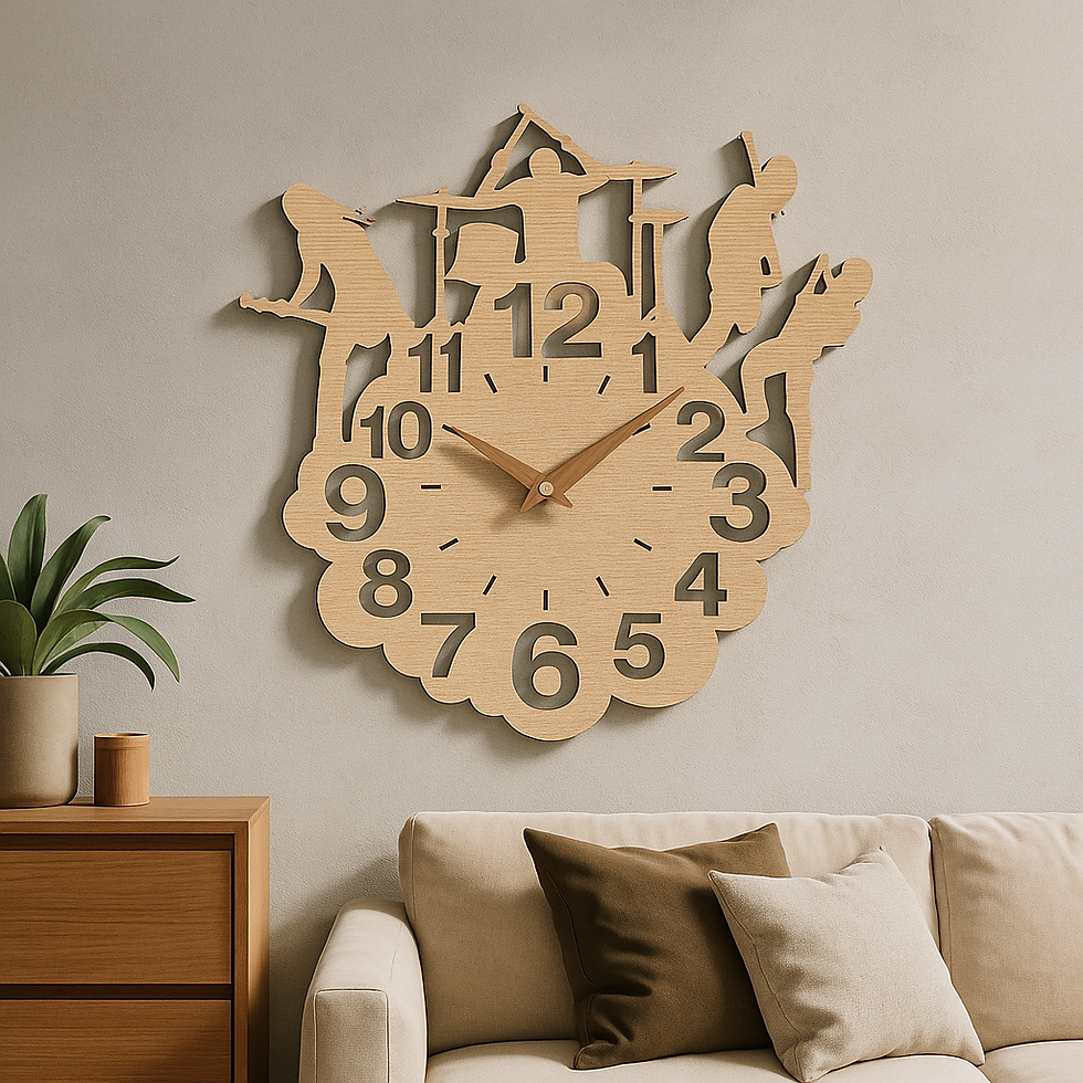 The final product is cut and manufactured according to this design layout, so the shape and details of your clock will match the black-and-white template, not the lifestyle or mock-up photos.