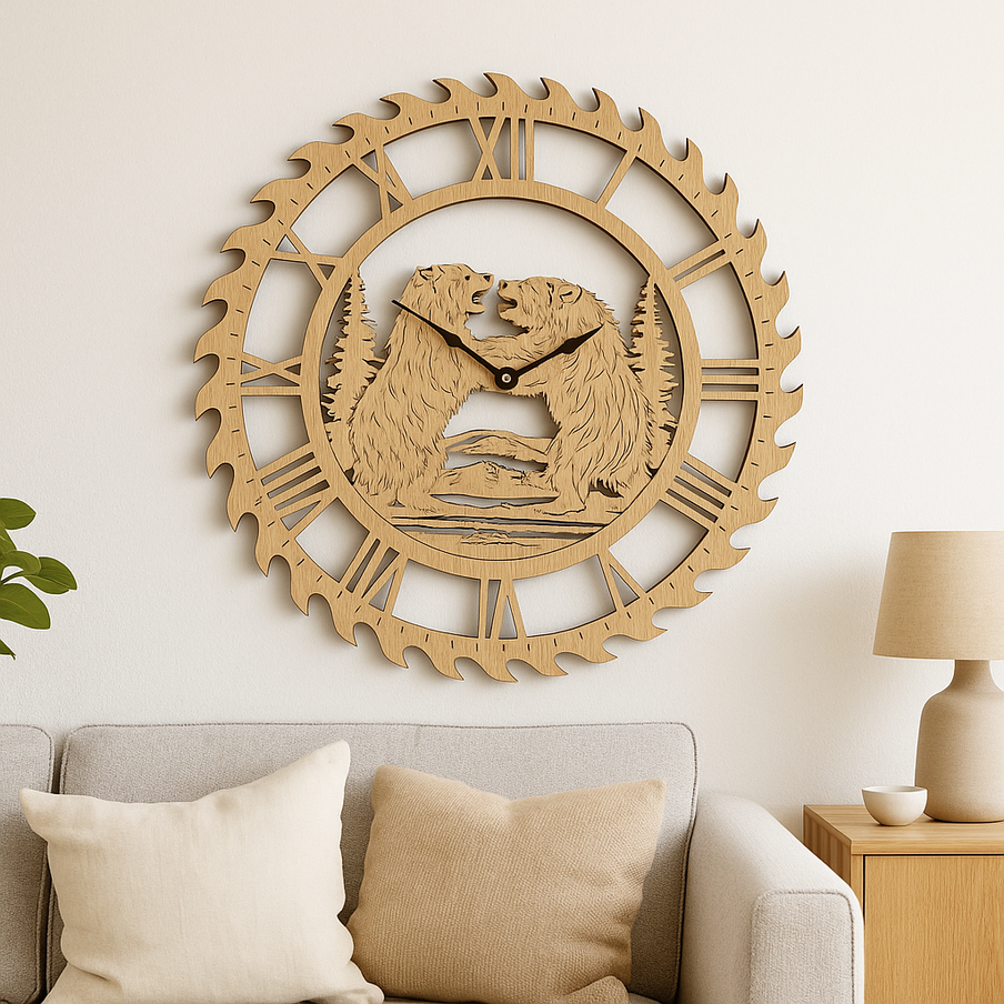 Designed with a silent, non-ticking quartz mechanism, this clock is perfect for bedrooms, offices, workshops, studios or any environment where peace and quiet matter. Its lightweight, slim and durable construction makes mounting effortless, while the bear-themed design adds personality to rustic homes, nature-inspired interiors, reading corners or modern living rooms.