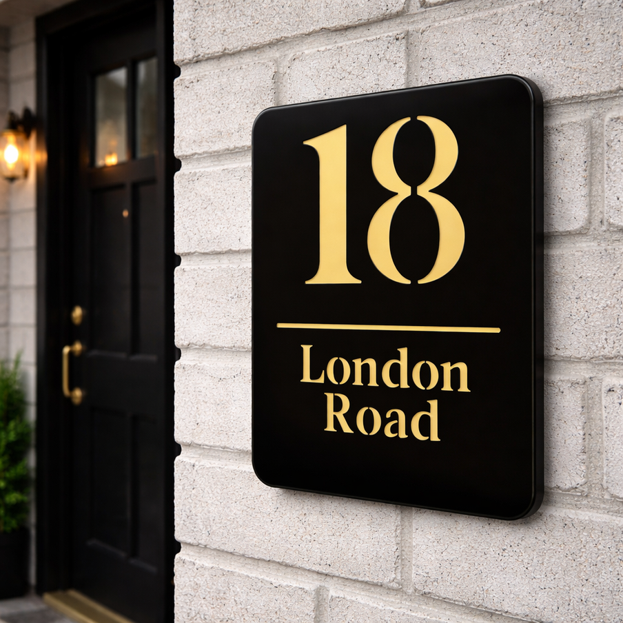 Crafted using a sleek dual-panel construction, the front plate is laser-cut with absolute precision, revealing a rich contrasting background that delivers a bold, eye-catching 3D effect.And the best part? You choose the colour.Whether you prefer classic black and gold, monochrome elegance, or bold contemporary tones — this plaque adapts to your aesthetic.