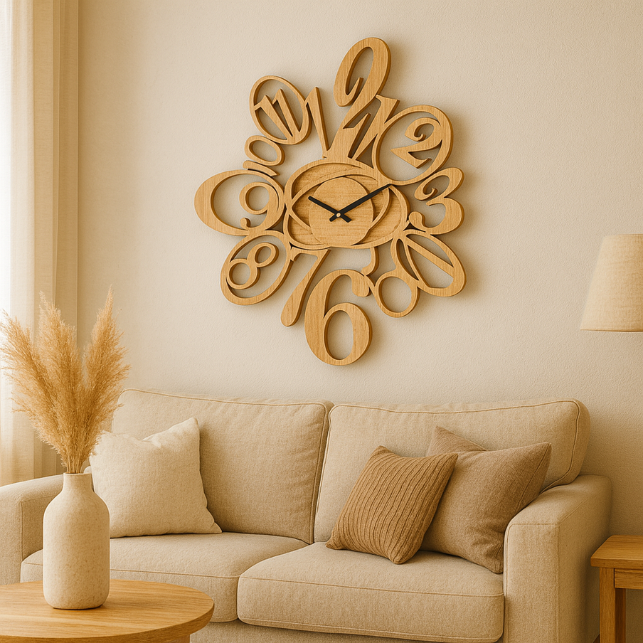 Illustration DisclaimerThe wall-mounted clock shown in the product image is for illustration purposes only. The actual cut-out design to be produced is displayed in the black-and-white reference image provided as the second visual. This ensures customers see the precise pattern that will be fabricated.